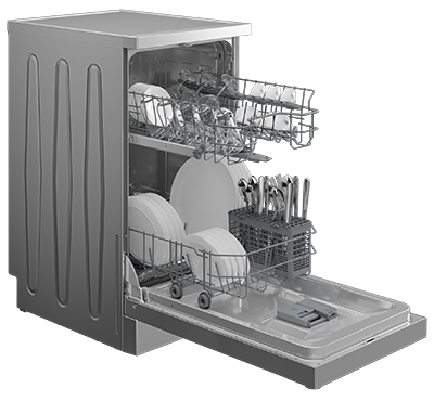 Это компактные модели. У них много плюсов: они не занимают много места, расходуют меньше воды, их цена ниже. Это хороший выбор, если пользоваться посудомойкой будут один или два человека. Минус в размере: внутри может не поместиться очень большая сковорода или больше 9–10 комплектов посуды. Для встраиваемой модели шириной 45 см нужно подобрать мебель такого же размера на кухне.