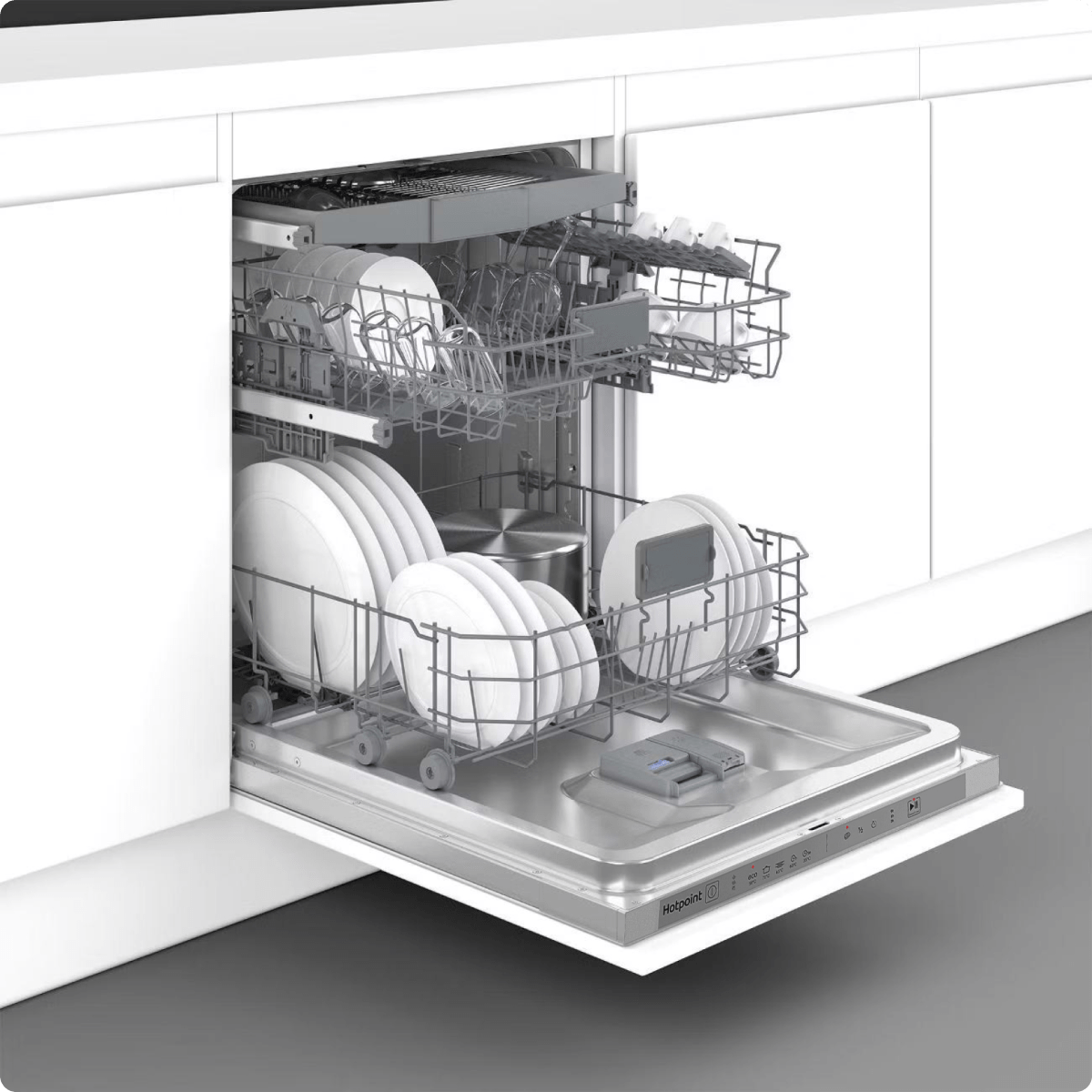 - Push&Go. Одним нажатием кнопки можно запустить полный цикл мойки и сушки, который подходит для всех типов посуды. Это не только экономит время, но и гарантирует стабильный результат без необходимости выбирать сложные настройки и программы.