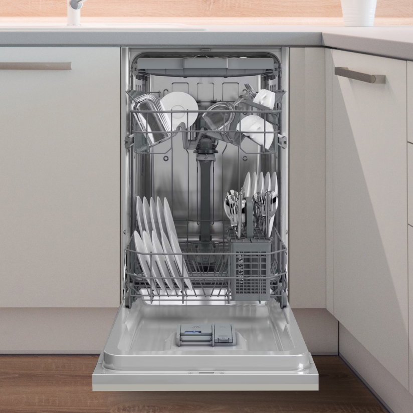- Узкие (45 см шириной). Эти модели рассчитаны на 9–10 комплектов и лучше всего подходят для небольших семей и малогабаритных кухонь.