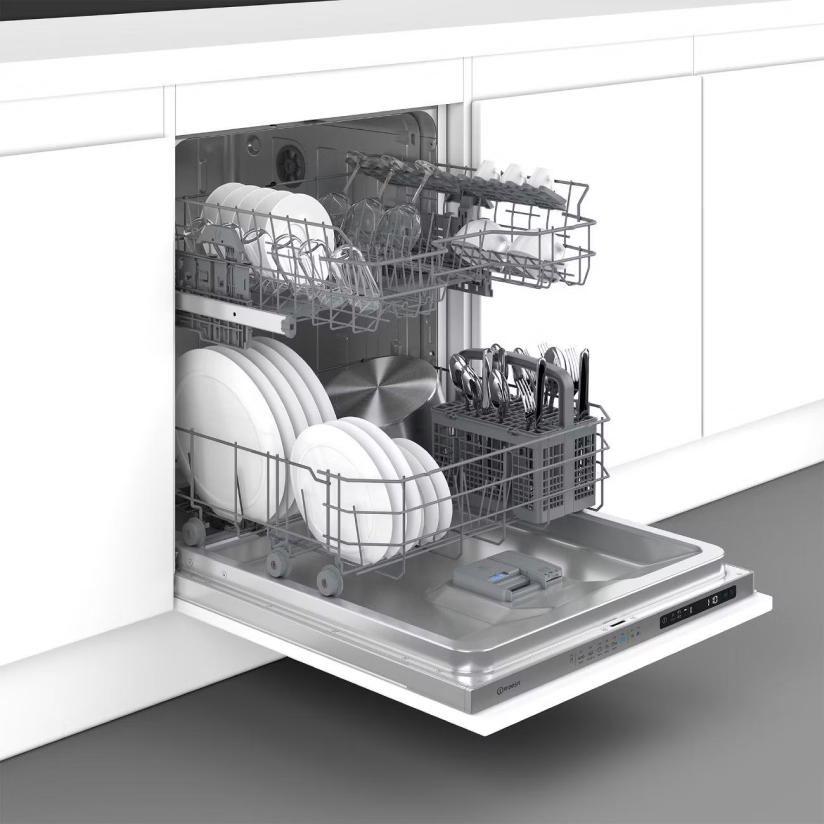 Встраиваемая посудомоечная машина Indesit DI 4C68 AE – это вместительная модель, рассчитанная на 14 комплектов посуды. Она была спроектирована для семей, использующих большое количество кухонных принадлежностей. Модель отличается классом энергоэффективности A, что обеспечивает небольшое потребление электроэнергии.