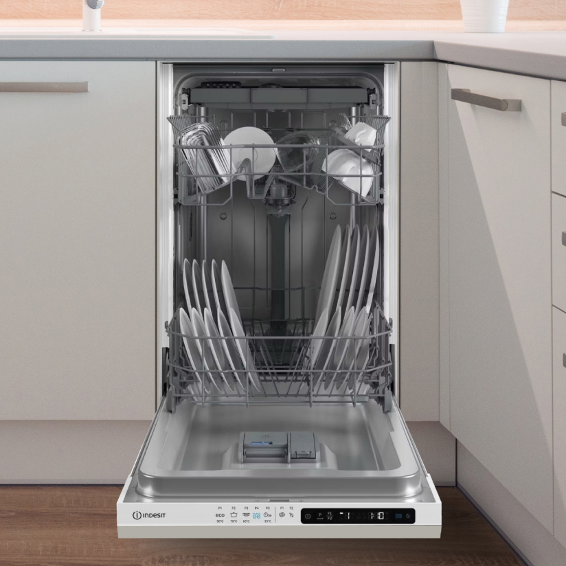 - Push&Go. Indesit DIS 2C50 самостоятельно выберет оптимальные параметры для стандартного цикла мойки. Это сокращает время на настройку машины и позволяет быть уверенным в том, что посуда будет идеально чистой без лишних усилий.