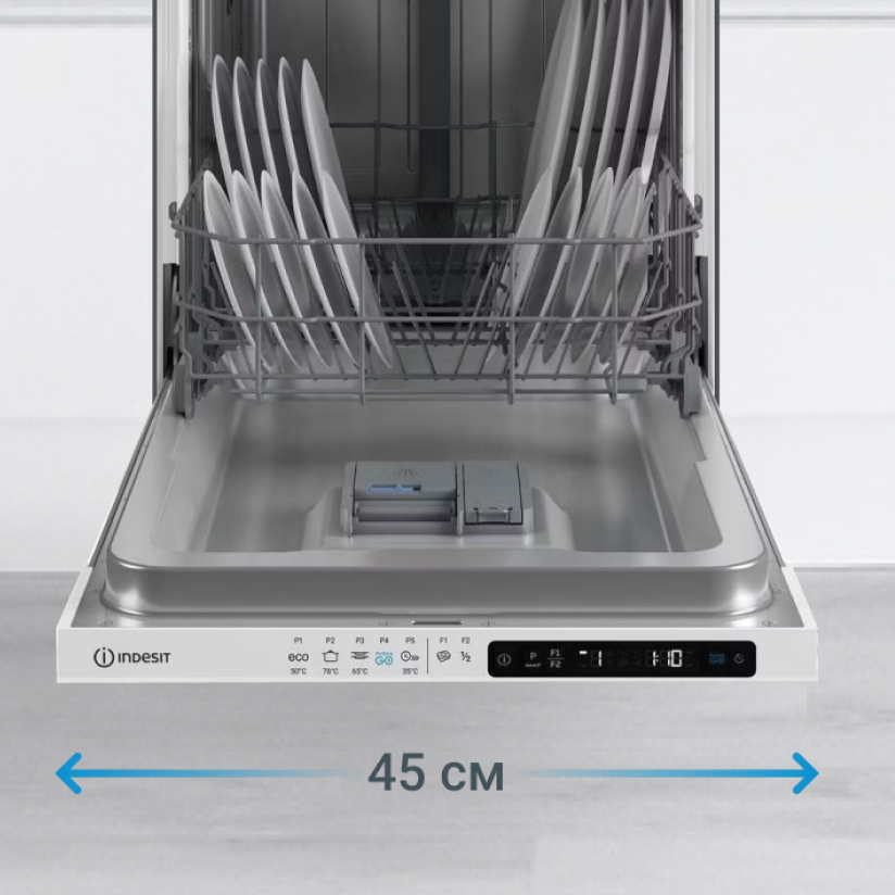 Встраиваемая посудомоечная машина Indesit DIS 2C50 создана для небольших кухонь. Её преимущества – узкая конструкция шириной всего 45 см. При этом она вмещает до 9 комплектов посуды, отличается экономичным расходованием воды и электроэнергии, а также простотой эксплуатации.