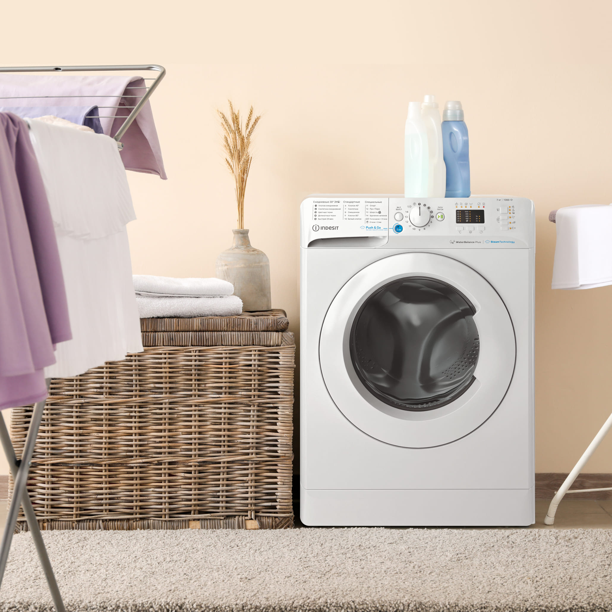 - Water Balance Plus. Как и в других моделях Indesit, здесь используется специальный датчик. Он позволяет системе автоматически регулировать количество воды в зависимости от объема загрузки. Благодаря этому, стиральная машина затрачивает ровно столько ресурсов, сколько необходимо для текущего цикла стирки ваших вещей.